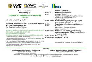 Urząd Marszałkowski Województwa Dolnośląskiego, Dolnośląska Agencja Współpracy Gospodarczej oraz Fundacja Karibu organizuje Forum Gospodarcze Polska – Republika Rwandy.