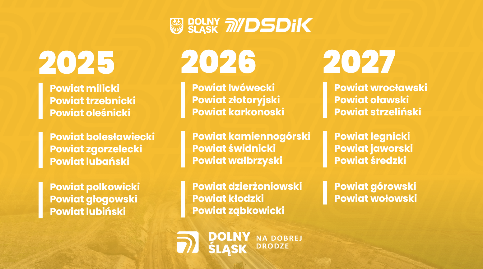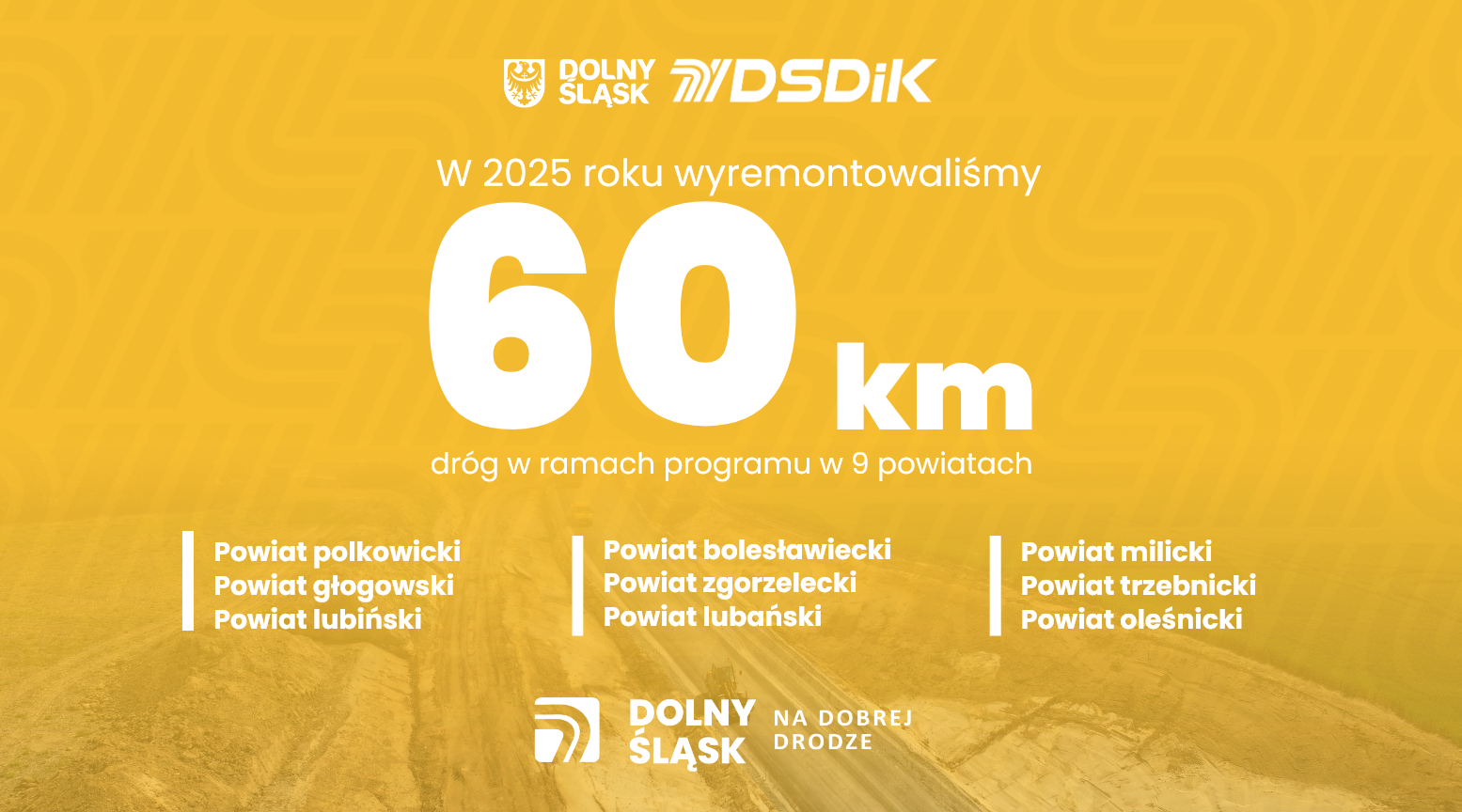 Program „Dolny Śląsk na Dobrej Drodze” został pilotażowo uruchomiony w połowie 2025 roku. Jego głównym celem jest szybka poprawa jakości przejazdu na drogach wojewódzkich. Dolny Śląsk zarządza siecią ponad 2200 kilometrów z nich, co czyni nasz samorząd drugim co do wielkości zarządcą dróg wojewódzkich w Polsce. Rocznie na realizację programu przeznaczono 75 mln zł, niezależnie od innych inwestycji i remontów. — Zależy nam na tym, aby w krótkim czasie wyremontować jak największą liczbę odcinków dróg wojewódzkich i realnie podnieść standard podróżowania i bezpieczeństwa mieszkańców — dodaje marszałek Paweł Gancarz.