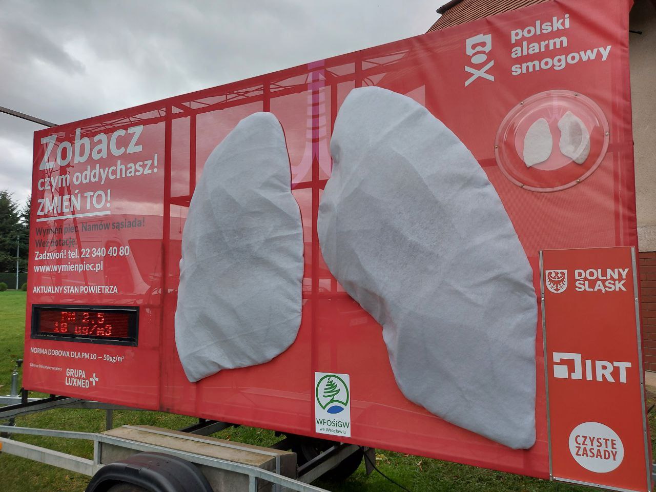Dwumetrowa, podróżująca po Dolnym Śląsku makieta, to specjalny model ludzkich płuc. Wykonano ją z przepuszczalnego materiału, który poprzez filtrowanie powietrza imituje oddech człowieka. Dzięki eksperymentowi możliwe jest zaobserwowanie realnego poziomu zanieczyszczenia powietrza, którym oddychamy. Walkę poprawę jakości powietrza Dolny Śląsk podjął kilka lat temu. W 2017 roku, dzięki pracom ekspertów m.in. z Instytutu Rozwoju Terytorialnego i Dolnośląskiego Alarmu Smogowego oraz prowadzonym w całym regionie konsultacjom społecznym, powstał plan walki ze smogiem. Przygotowane zostały uchwały antysmogowe, które zostały następnie przyjęte przez Sejmik Województwa Dolnośląskiego. Był to kompromis pomiędzy oczekiwaniami wielu grup społecznych, w tym ekologów i mieszkańców województwa. Ich celem była skuteczna walka o czystsze powietrze oraz lepszą jakość życia dla Dolnoślązaków poprzez wyeliminowanie najgorszej jakości paliw i stopniowa rezygnacja z niskoklasowych instalacji grzewczych.