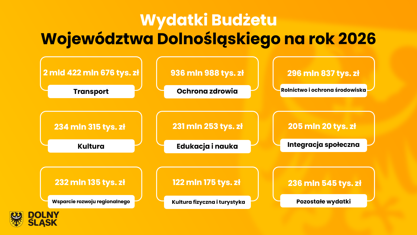 W przyszłym roku wydatki na kulturę w regionie sięgną 234 miliony złotych. Ponad 152 miliony z tej puli przeznaczonych zostanie na bieżącą działalności dolnośląskich instytucji kultury. Konkursy dla NGO pochłoną 3 miliony złotych, a 12 milionów trafi na dotacje do prac przy zabytkach udzielonych w drodze konkursu.
