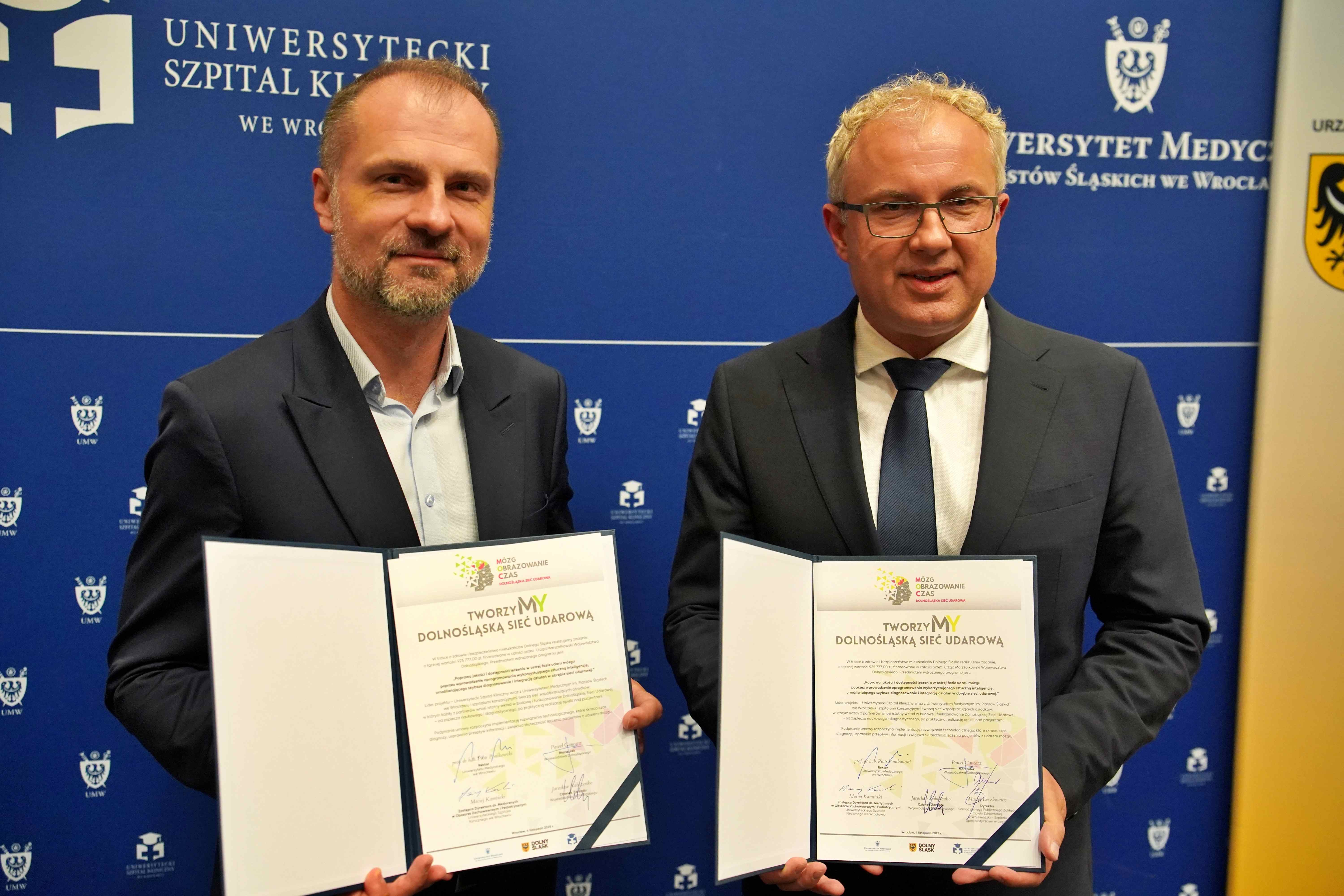 Powstała pierwsza w Polsce regionalna inicjatywa systemowa, która przyspieszy diagnostykę i leczenie udarów mózgu — Dolnośląska Sieć Udarowa. Symboliczne porozumienie podpisało 12 dolnośląskich szpitali, a liderem konsorcjum został Uniwersytecki Szpital Kliniczny we Wrocławiu. Projekt ma łączyć szybkie przesyłanie badań, telemedycynę oraz analizę obrazów z użyciem sztucznej inteligencji, by decyzje terapeutyczne zapadały w ciągu kilku minut.