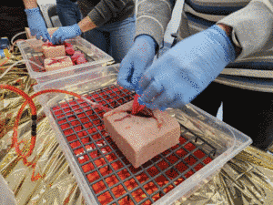 Każda z grup szkoleniowych na zakończenie kursu przystąpiła do egzaminu na ratownika na który składał się egzamin teoretyczny (30 pytań, maksymalna liczba błędów 3) oraz część praktyczna podczas której należało przeprowadzić pozorowaną akcję ratowniczą według wylosowanego scenariusza.