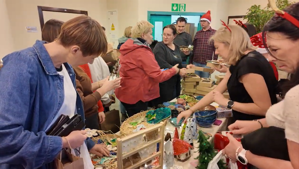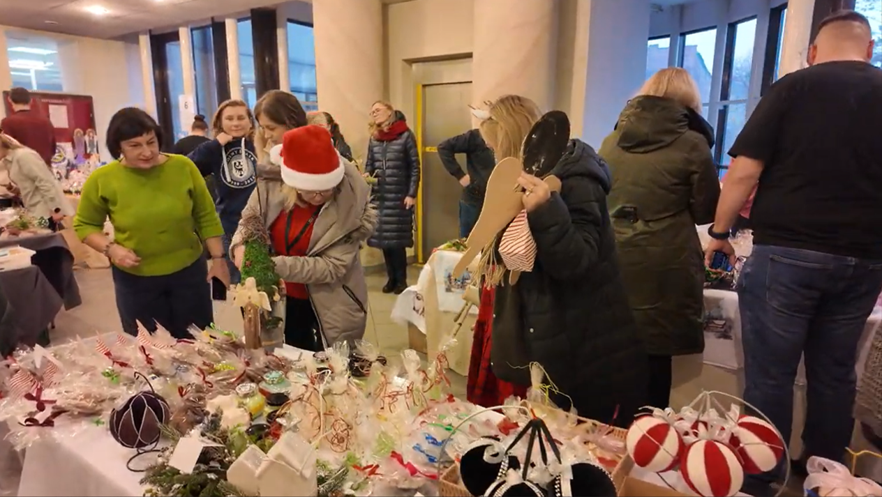 W budynku Urzędu Marszałkowskiego przy ul. Walońskiej, 5 grudnia 2025 r., już po raz trzeci odbył się Kiermasz Świąteczny z udziałem wystawców z warsztatów terapii zajęciowej oraz zakładów aktywności zawodowej z terenu Dolnego Śląska. Uczestnicy zaprezentowali wyjątkowe, ręcznie wykonane ozdoby, upominki i dekoracje świąteczne.