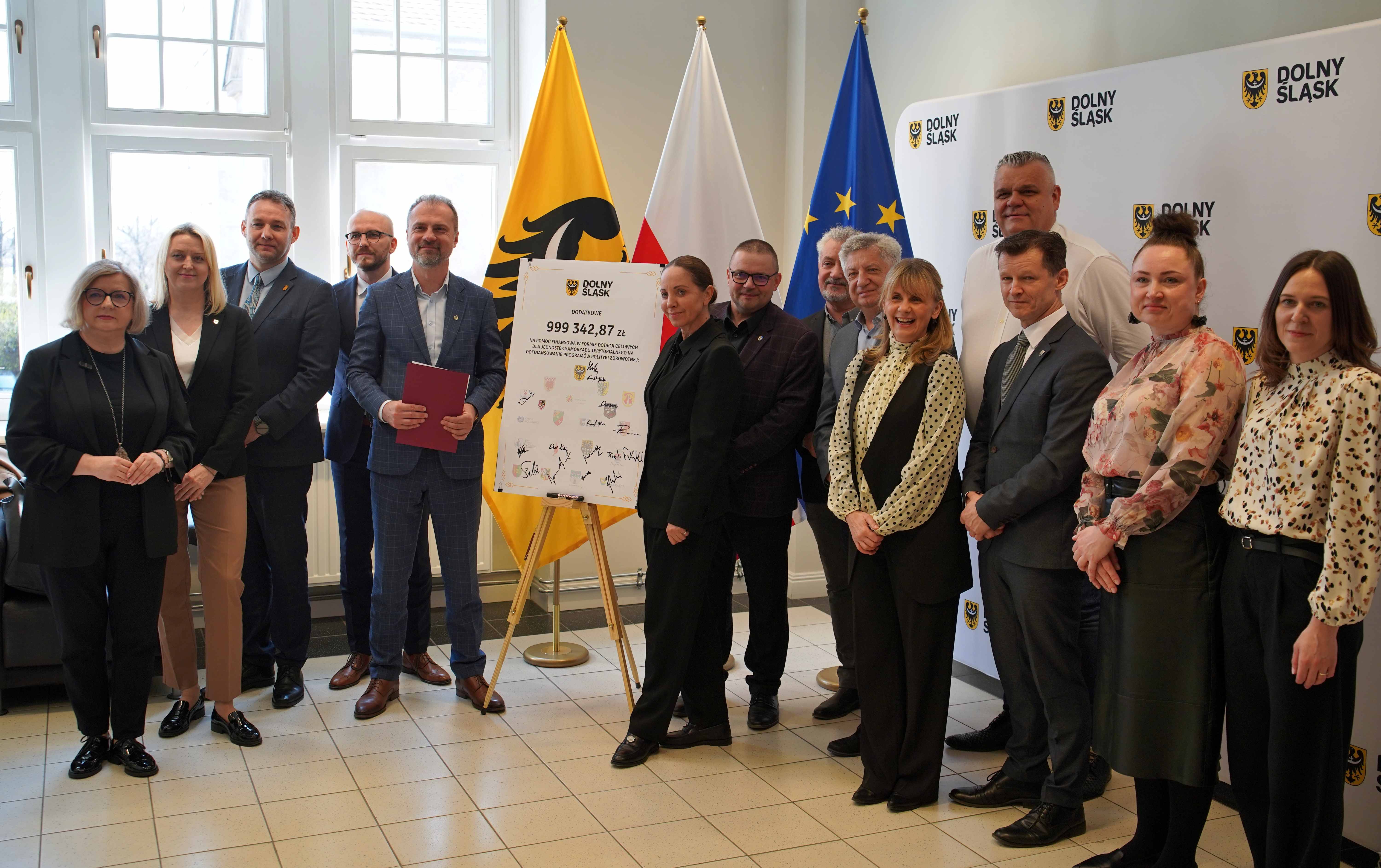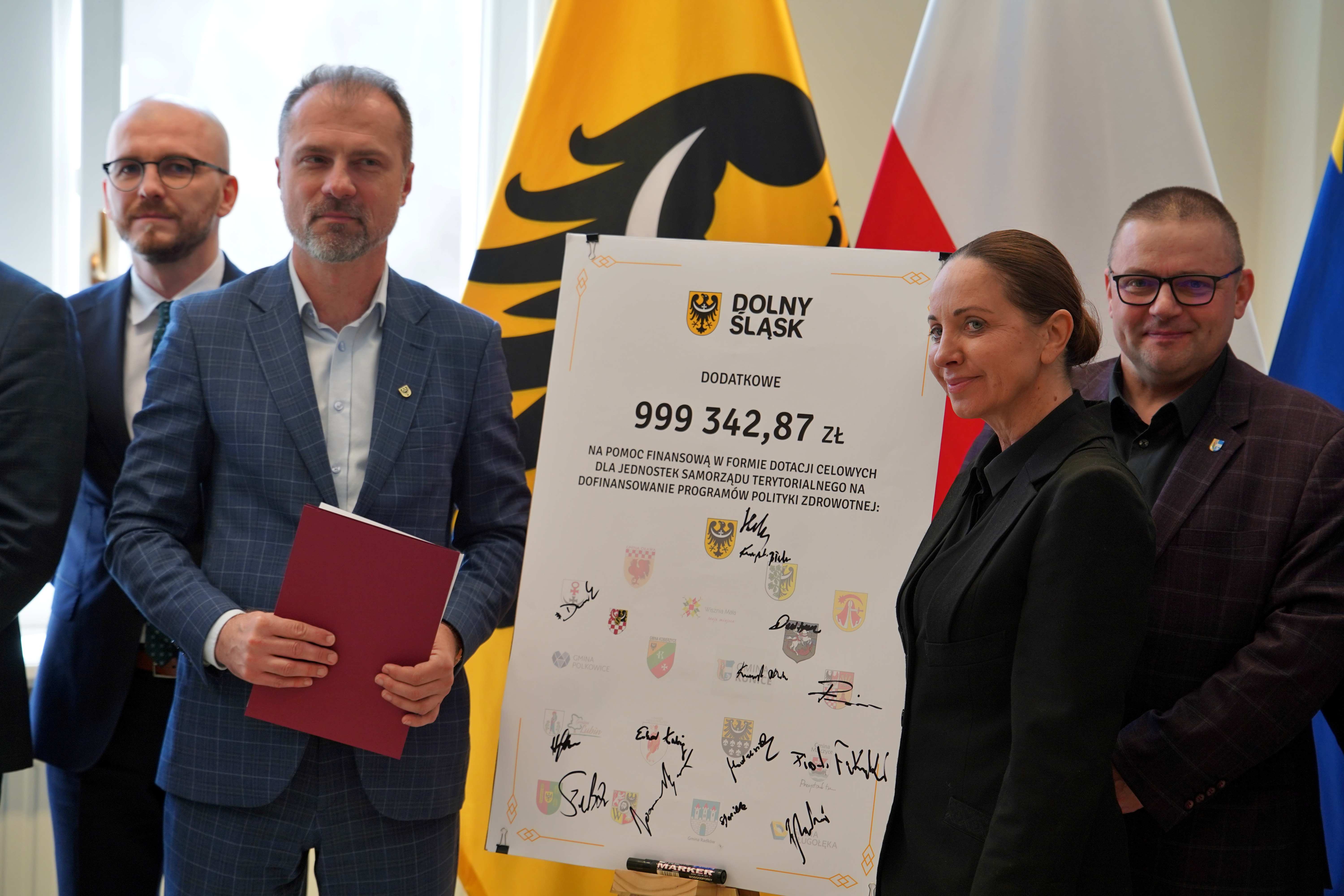 Samorząd Województwa Dolnośląskiego przeznaczył milion złotych na wsparcie programów polityki zdrowotnej realizowanych przez lokalne samorządy. W 2026 roku z dofinansowania skorzysta 19 gmin i powiatów, które przeprowadzą działania profilaktyczne i rehabilitacyjne dla mieszkańców regionu. Podpisanie deklaracji odbyło się podczas konferencji prasowej z udziałem przedstawicieli samorządu województwa oraz beneficjentów programu.